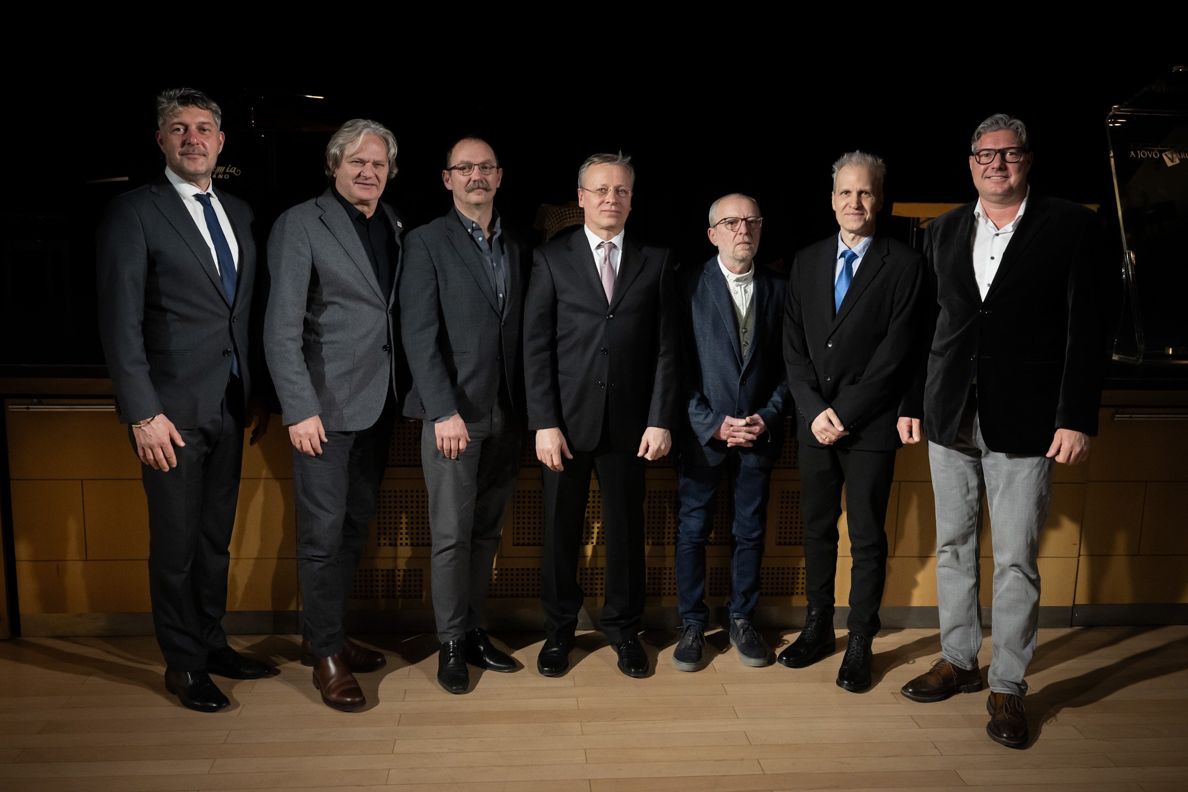 A Pilinszky-emlékérmet a Pesti Vigadó részéről Nagy Zsombor ügyvezető igazgató és Rátóti Zoltán, a Magyar Művészeti Akadémia alelnöke vette át.